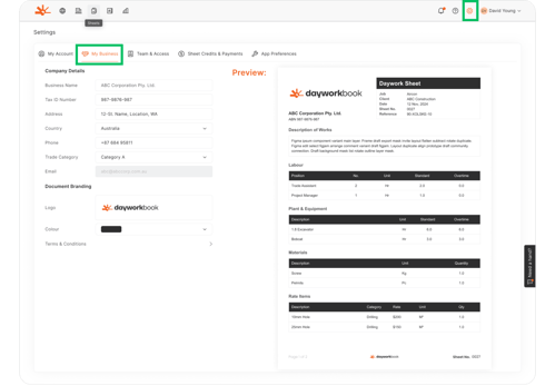 • Professional Preview: Review how your branding appears on daywork sheets and Billing Reports