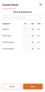 - Plant & Equipment: Machinery details, charge out rates, day and hour units