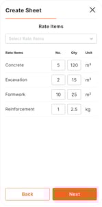 - Rate items: Track composite work by measurable units (m², m³, linear metre, tonne)