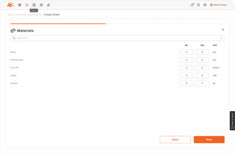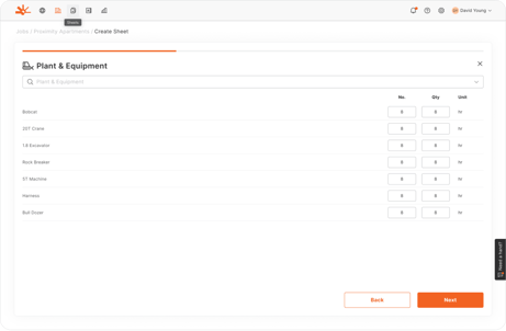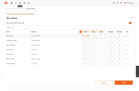 - Sheets: View all daywork sheets across projects