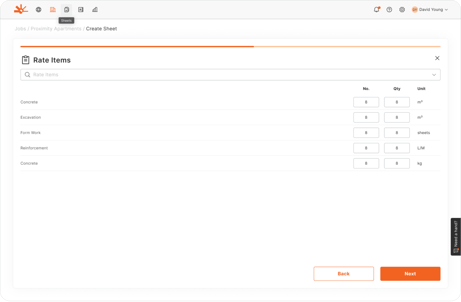 - Rate Items: Composite work description, unit pricing, number of each