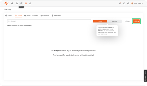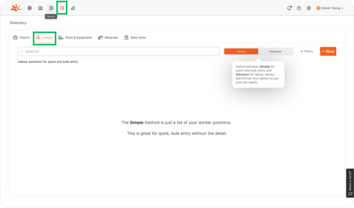 Learn the differences between Simple and Advanced labour tracking methods in Dayworkbook, configure labour positions and individual workers, and choose the approach that best suits your organisation's documentation and productivity requirements.