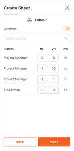 - Track labour by position only (e.g., "3 Tradesman @ 8 hours each")